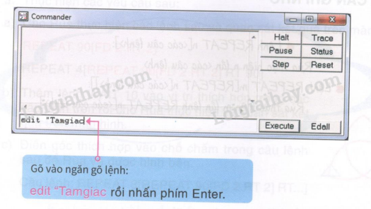 Bước 1. Gõ lệnh edit “tamgiac” trong ngăn gõ lệnh