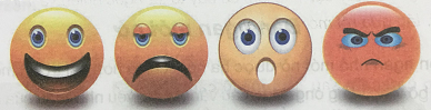 Em quan sát kĩ đôi mắt và miệng của các khuôn mặt đang thể hiện cảm xúc gì?
