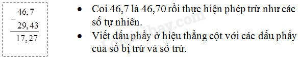 – Coi 46,7 là 46,70 rồi thực hiện phép trừ như trừ các số tự nhiên.