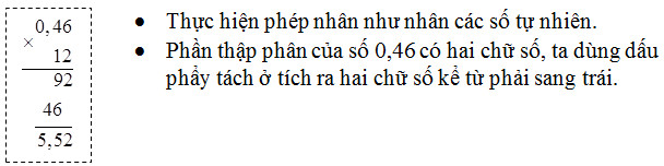 a) Thảo luận cách đặt tính và tính : \(0,46 \times 12 = ?\)