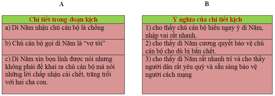 b – 1: Chú cán bộ gọi dì Năm là “vợ tôi” – cho thấy chú cán bộ hiểu ngay ý dì Năm, nhập vai rất nhanh.