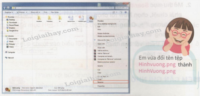 Bước 1. Mở thư mục HOCTAP đã tạo ở Bài 3, nháy chuột phải vào tệp có tên Hinhvuong.png