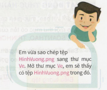 Em thực hiện thao tác sao chép từ thư mục này sang thư mục khác theo hướng dẫn.