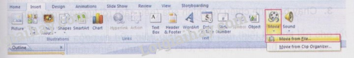 – Nháy vào thẻ Insert, chọn Movie () rồi chọn tiếp Movie from File.