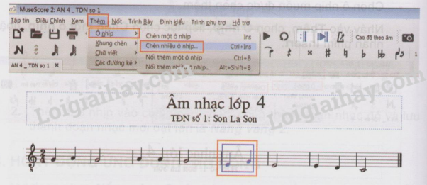 A. Hoạt động cơ bản – Bài 4 : Chèn ô nhịp và thay đổi thông tin về bản nhạc
