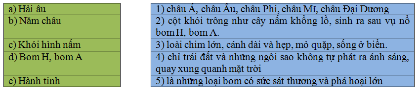 b – 1: Năm châu – châu Á, châu Âu, châu Phi, châu mĩ, châu Đại Dương.