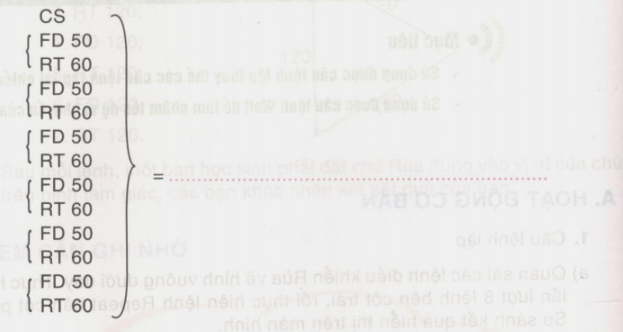 Giải phần A. Hoạt động cơ bản bài 5 trang 117, 118, 119, 120 sách hướng dẫn học tin học lớp 4. Câu lệnh lặp a) Quan sát các lệnh điều khiển . . .