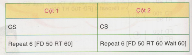 Câu lệnh thay thế: REPEAT 6 [FD 50 RT 60]