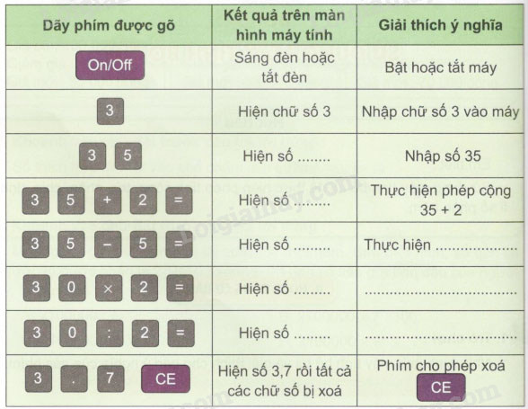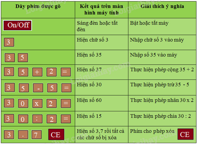 Em quan sát máy tính bỏ túi và giải thích cho bạn ý nghĩa của các phím.