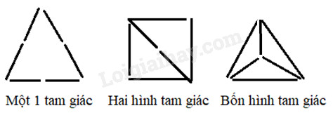 Chia học sinh trong lớp thành các đội, thi nhau xếp nhanh 6 que tính để được : 1 hình tam giác, 2 hình tam giác, 4 hình tam giác.