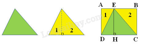 Hình chữ nhật ABCD có chiều dài bằng độ dài đáy DC của hình tam giác EDC, có chiều rộng bằng chiều cao EH của hình tam giác EDC.