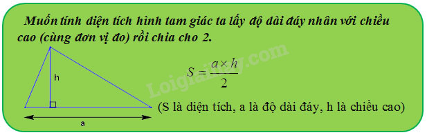 – Áp dụng quy tắc đó, tính diện tích của hình tam giác đã cho.