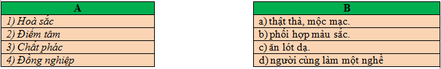a) Chọn lời giải nghĩa ở cột B phù hợp với từ ngữ ở cột A