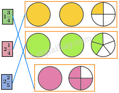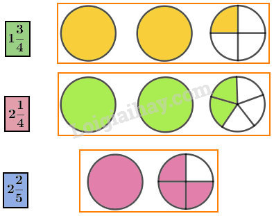 Quan sát hình vẽ để tìm hỗn số tương ứng với mỗi hình.