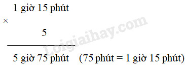 Vậy : 1 giờ 15 phút \(\times\) 5 = 6 giờ 15 phút.