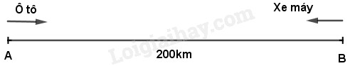 Ví dụ : Quãng đường AB dài 200km. Một ô tô đi từ A đến B với vận tốc 60 km/giờ, cùng lúc đó một xe máy đi từ B đến A với vận tốc 40 km/giờ. Hỏi kể từ lúc bắt đầu đi, sau mấy giờ ô tô gặp xe máy ?