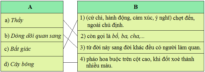 Chọn lời giải nghĩa ở cột B phù hợp với mỗi từ ngữ ở cột A.