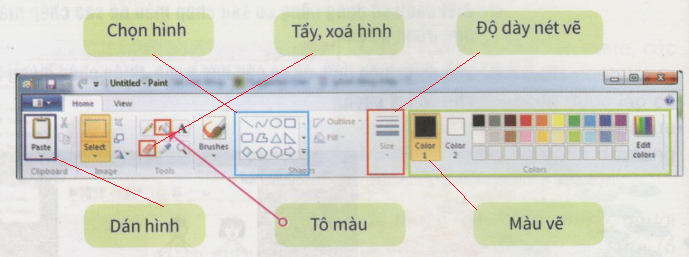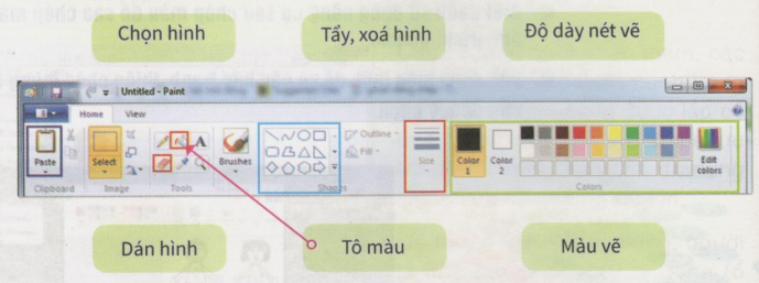 Bước 4. Em chọn công cụ tô màu và tô màu hình vẽ con diều theo mẫu.