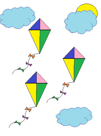 Mở bài vẽ Con diều, sử dụng công cụ sao chép để sao chép thành nhiều con diều khác. Vễ thêm mặt trời và các đám mây rồi tô màu để bức bức tranh sinh động hơn.