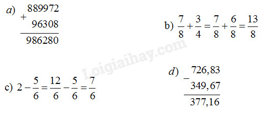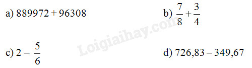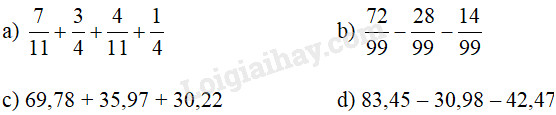 a) \(\dfrac{2}{5} + \dfrac{3}{4}\,\,;\)                       \(\dfrac{7}{{12}} – \dfrac{2}{7} + \dfrac{1}{{12}}\,\,;\)               \(\dfrac{{}}{{}}\) \(\dfrac{{12}}{{17}} – \dfrac{5}{{17}} – \dfrac{4}{{17}}\)