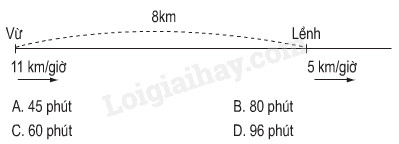 Cùng một lúc Vừ đi ngựa với vận tốc 11km/giờ, Lềnh đi bộ với vận tốc 5km/giờ và đi cùng chiều với Vừ. Biết rằng khi bắt đầu đi Lềnh cách Vừ một quãng đường 8km. Hỏi sau bao nhiêu phút Vừ đuổi kịp Lềnh ?