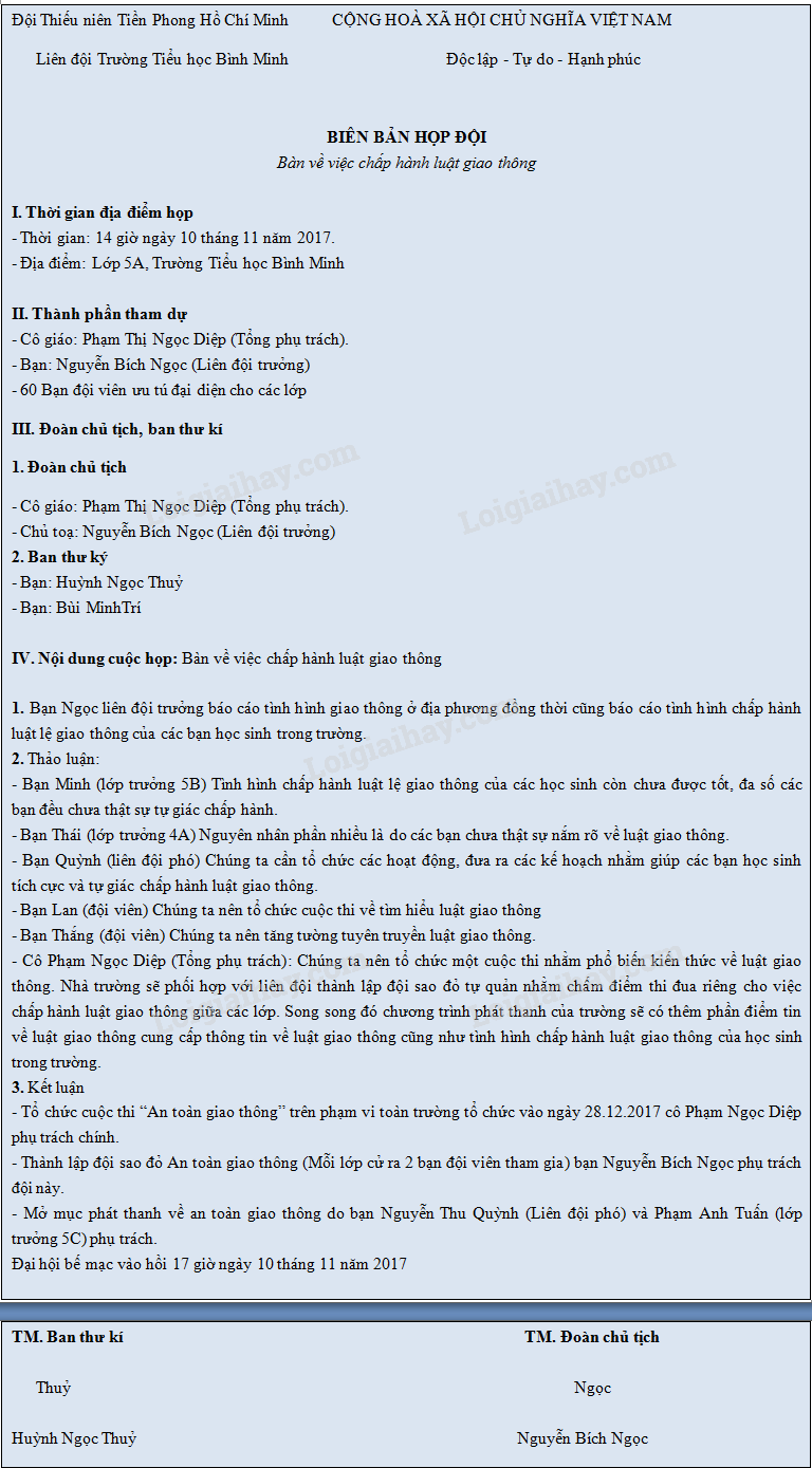 Viết biên bản một cuộc họp tổ, lớp hoặc chi đội em.