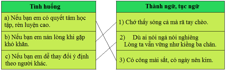 Chọn thành ngữ, tục ngữ phù hợp với những tình huống để khuyến khích hoặc khuyên nhủ bạn.