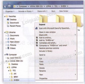 Bước 1. Điều khiển để ngăn trái hiển thị như hình dưới. Nháy vào thư mục KHIEM rồi chọn Copy (Sao chép).