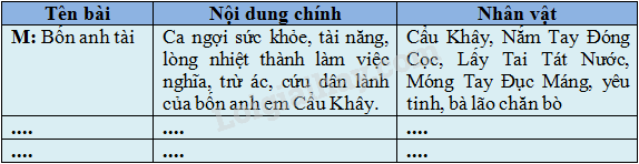 Em xem lại các bài văn xuôi đã học trong chủ điểm Người ta là hoa đất: Bốn anh tài, Trống đồng Đông Sơn, Anh hùng lao động Trần Đại Nghĩa.