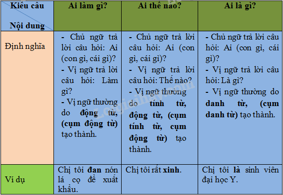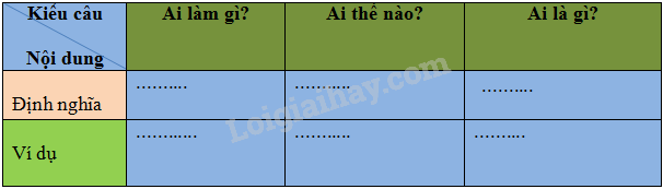 Phân biệt 3 kiểu câu kể (bằng cách nêu định nghĩa, ví dụ về từng loại kiểu câu, ghi lại vào phiếu học tập hoặc bảng nhóm):