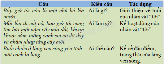 – Em cần biết nêu tác dụng của câu tức là cho biết câu dùng để nói lên điều gì; giới thiệu về ai (cái gì), kể về hoạt động của ai (con gì), tả, nhận xét về ai (cái gì).