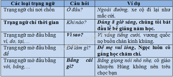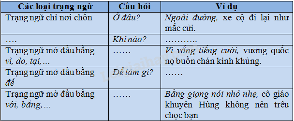Viết vào những chỗ trống để hoàn chỉnh bảng tổng kết sau: