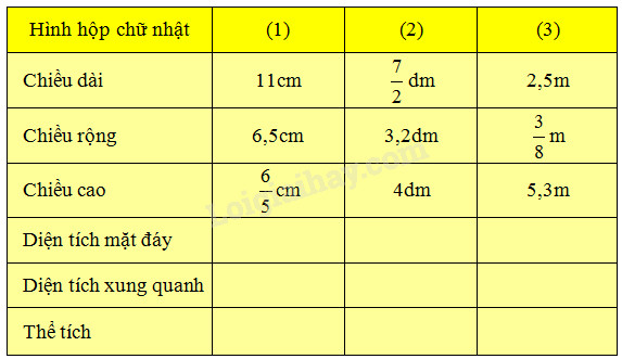 Tiếp nối nhau nêu quy tắc tính diện tích xung quanh, thể tích, chu vi mặt đáy … của hình hộp chữ nhật và hình lập phương, chẳng hạn :