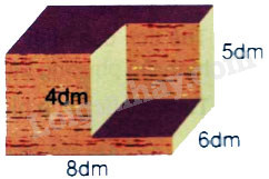 Một khối gỗ dạng hình hộp chữ nhật sau khi cắt bỏ một hình lập phương cạnh 4dm, hình còn lại có kích thước như hình bên. Tính thể tích phần gỗ còn lại.