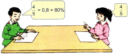 Em viết một phân số hoặc một số thập phân rồi đố bạn viết số đó dưới dạng tỉ số phần trăm, chẳng hạn :