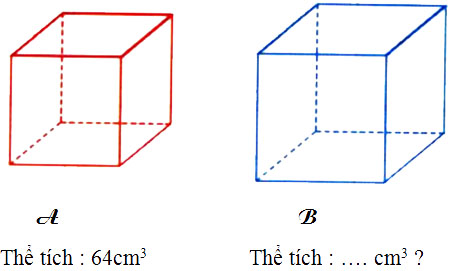 – Muốn tìm thể tích hình lập phương lớn ta lấy thể tích hình lập phương bé nhân với tỉ số thể tích của hình lập phương lớn và hình lập phương bé.