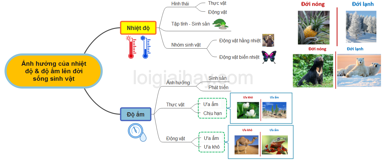 Sơ đồ tư duy Ảnh hưởng của nhiệt độ và độ ẩm lên đời sống sinh vật: