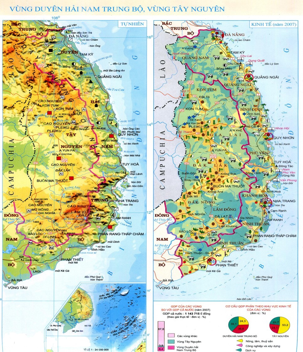 Atlat Địa lí Việt Nam trang 28_Vùng duyên hải Nam Trung Bộ, vùng Tây Nguyên