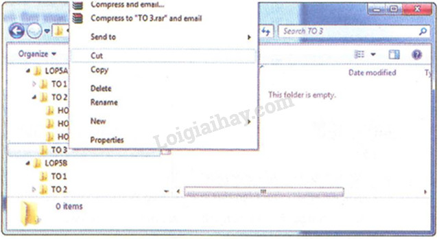 – Nháy nút phải chuột lên thư mục TO 3 trong thư mục LOP5A ở ngăn trái.