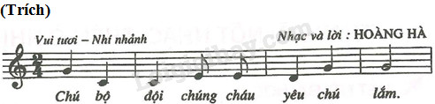 Giải phần B. Bài tập thực hành bài 3 trang 74 sách bài tập hướng dẫn học tin học lớp 5. Mở tệp chubodoi.mscz đã lưu ở Bài 2 rồi ghi lời của đoạn nhạc theo mẫu sau: