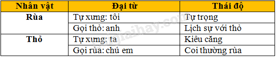 – Thỏ xưng là ta, gọi rùa là chú em