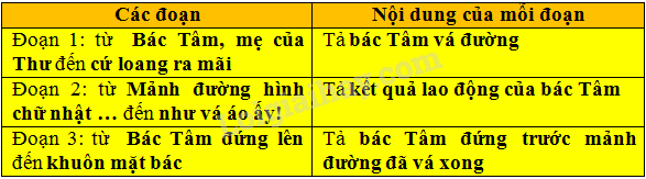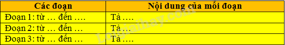 2) Xác định các đoạn của bài văn và nội dung chính của mỗi đoạn: