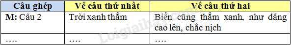 b) Tìm câu ghép trong đoạn văn trên và viết vào bảng nhóm theo mẫu: