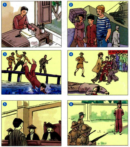 – Trang 5: Trong ngục bọn giặc tra tấn anh rất dã man nhưng không moi được gì ở anh. Trước tòa án anh dõng dạc vạch mặt bọn đến quốc và khẳng định lí tưởng cách mạng của mình.