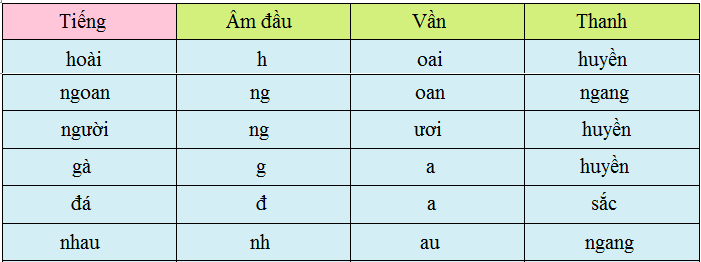 Phân tích cấu tạo của từng tiếng trong câu tục ngữ dưới đây. Viết kết quả phân tích 5 tiếng vào phiếu theo mẫu: