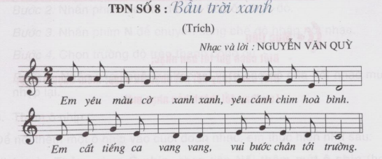Em hãy chép lại đoạn nhạc dưới đây bằng phần mềm MuseScore. Lưu tên đoạn nhạc với tựa đề: Âm nhạc lớp 4, tiêu đề: TDN số 8: Bầu trời xanh rồi hát theo đoạn nhạc