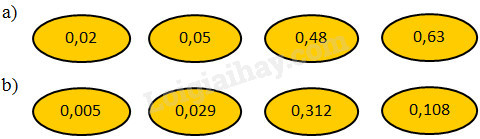 c) \(\dfrac{{23}}{{1000}} = 0,023\)                                   d) \(\dfrac{{231}}{{1000}} = 0,231\)