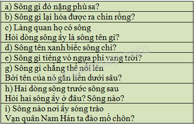 4 – e : Đáp án là sông Mã (Từ lưu ý: vó ngựa – liên quan đến ngựa – Mã)