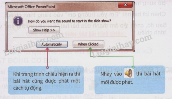 trong trang trình chiếu, màn hình hiển thị hai cách thiết lập nội dung âm thanh