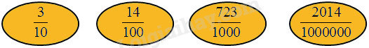 Phân số thập phân là phân số có mẫu số là \(10;{\rm{ }}100;{\rm{ }}1000;{\rm{ }}10{\rm{ }}000\).